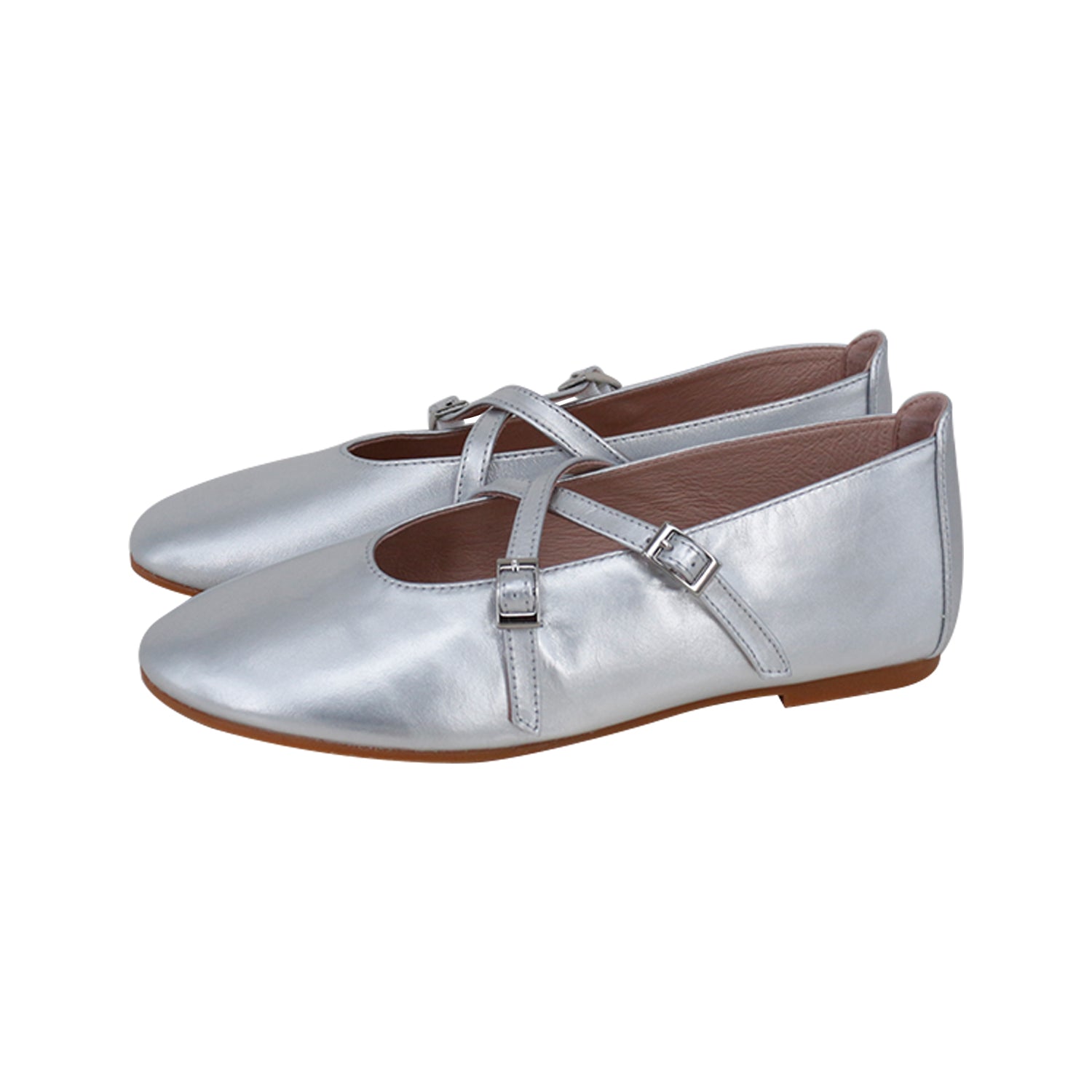 Silver Metallic Leather Cross Strap